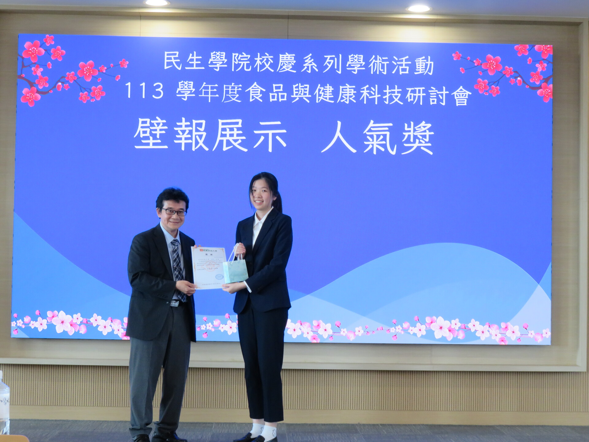壁報展示人氣獎-長庚科技大學 連林婕 與國立宜蘭大學 向映璇